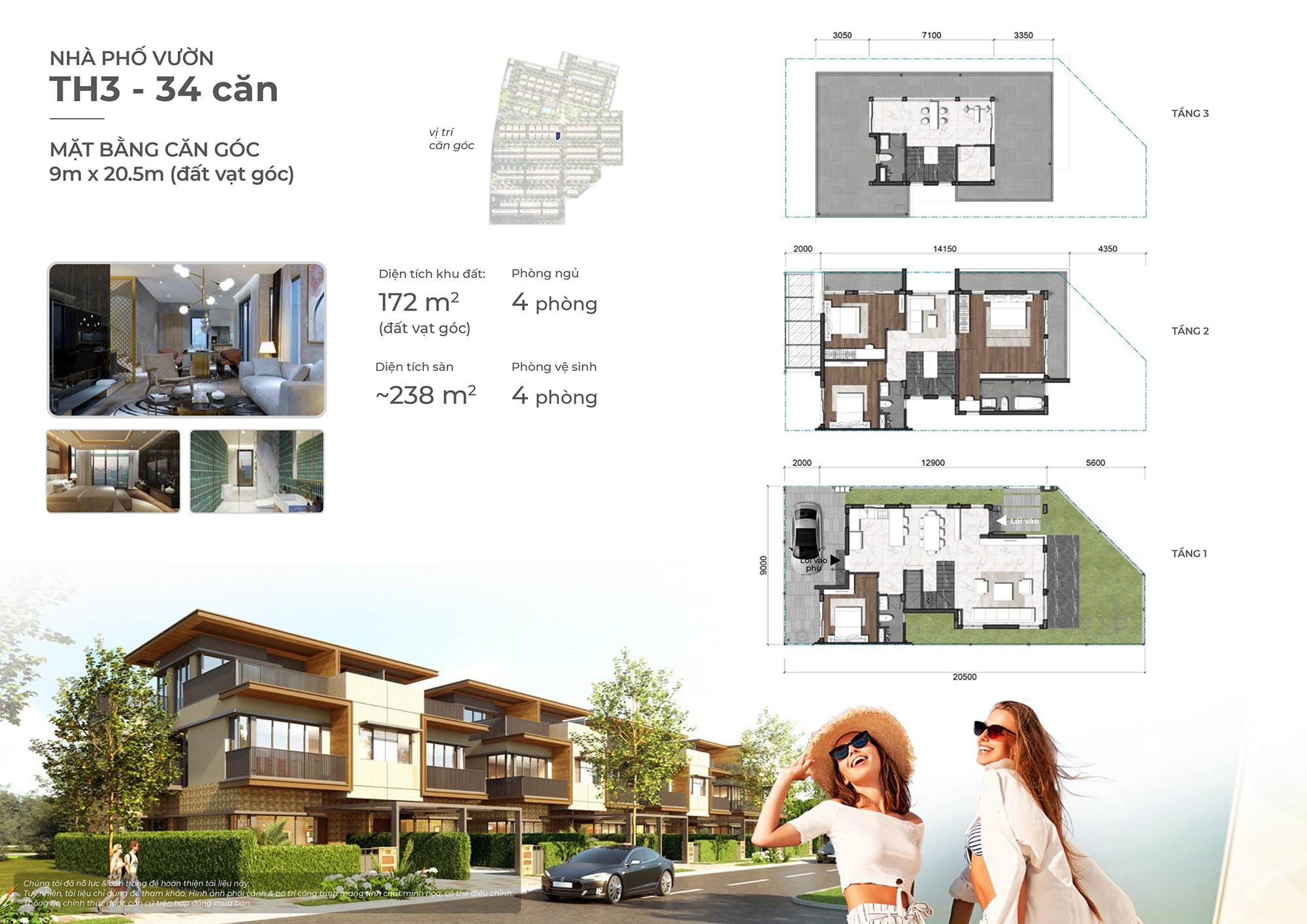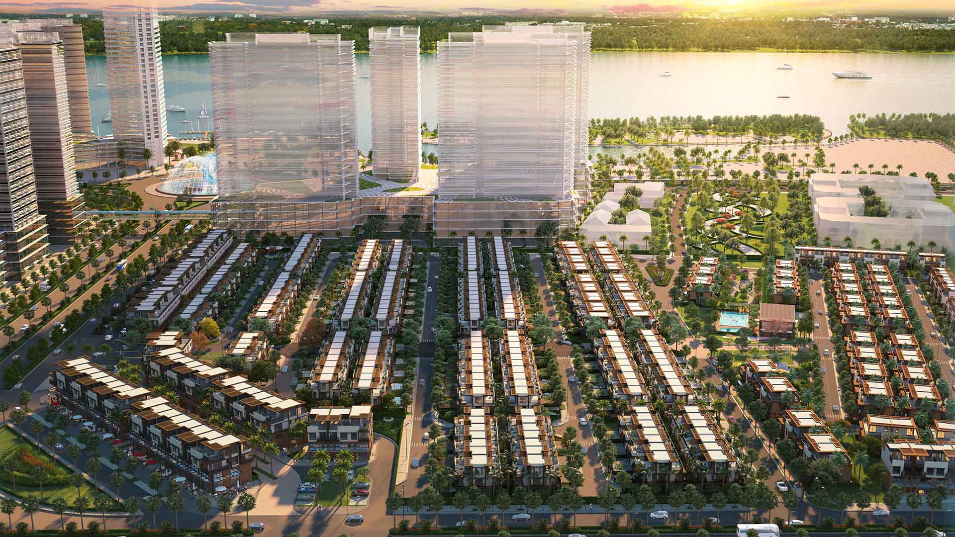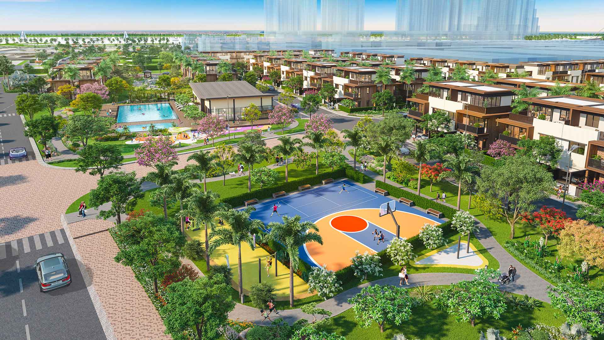 Mật độ xây dựng: 30% (70% còn lại dành cho cây xanh, sông nước và tiện ích)